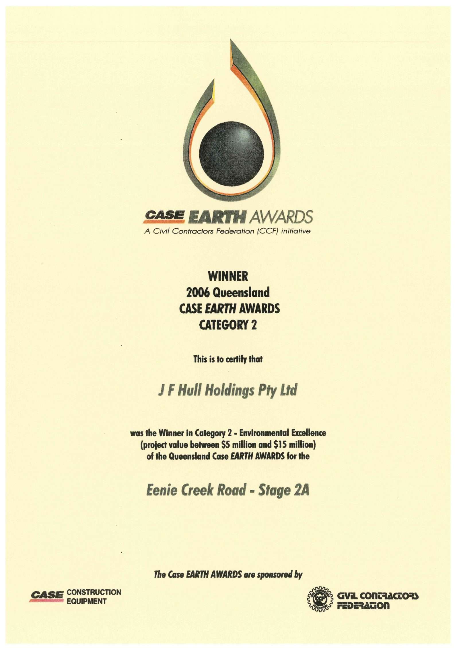 This project was awarded the 2006 Queensland Case Earth Awards Category 2 for Environmental Excellence.